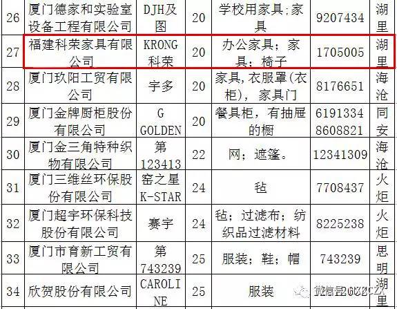 福建科榮家具有限公司的“KRONG科榮”等67件商標為2016年廈門市著名商標。